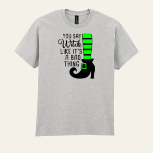 Get into the spooky spirit with our Halloween t-shirt. Embrace your inner witch this Halloween, with the catchy slogan "You Say Witch Like It's A Bad Thing!".