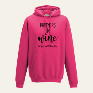 Get ready to party like a proper hen with the "Partners in Wine" personalised hoodie. This cheeky number is the perfect way to celebrate your last fling before the ring, whether you're sipping bubbly with the girls or dancing the night away.